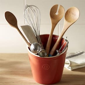 Porta Utensílios 14X16Cm Vermelho Emile Henry Porta utensílios feito de cerâmica "hr®" high resistance . Ideal para armazenamento de talheres, pinceis, ou até mesmo para servir petiscos longos como o gressini. Linha feita de cerâmica "hr®" high resistance . Colorida e resistente, é específica para se ter às mãos diariamente na cozinha. Podem ir à lava-louças e resistem ao choque térmico. Medidas aproximadas produto a/l/p - cm : 16,0 x 15,0 x 15,0Peso aproximado produto kg : 0,93