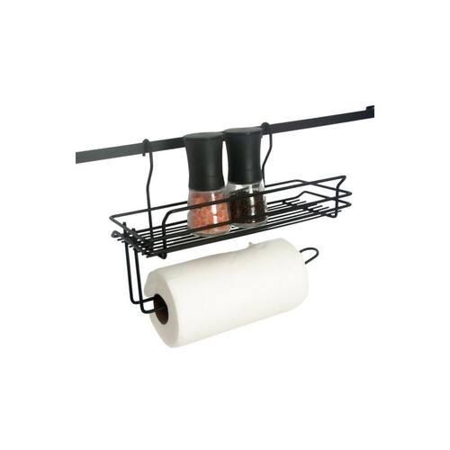 Porta Utensílios com Suporte para Pano ou Papel Toalha Classic Jomer fabricado em aço, conta com uma tela superior para apoiar condimentos ou similares e um suporte para encaixe de rolo de papel toalha ou um pano de prato. Fixado na parede por meio de um encaixe na barra de sustentação, é ideal para pendurar os utensílios de cozinha de forma organizada garantindo praticidade no uso.