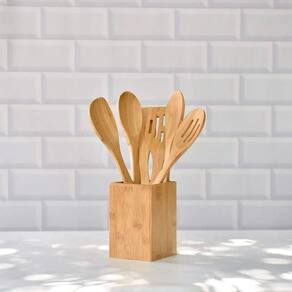 Resistência e praticidade em sua cozinha ou espaço Gourmet, com divisórias que deixará seus utensílios bem acomodados e organizados, trazendo mais praticidade na hora de guardar ou servir.?Peça produzida em bambu, um material pró-ecológico, resistente a odores e bactérias.?Ficha técnica:- Código: 4081070119- Marca: Kenya- Conteúdo da Embalagem: 1 Porta Utensílios- Material: Bambu- Peso: 0,638kg- Dimensões: 20cm x 14cm x 27cm (AxLxP)- Garantia: 3 Meses - Contra defeito de fabricação