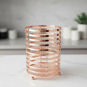 O Porta Utensílios em Metal Cobre Rose Gold é a combinação perfeita entre praticidade e elegância. Seu design moderno com estrutura geométrica traz um toque sofisticado para a bancada da cozinha, deixando os utensílios sempre organizados e ao alcance das mãos.