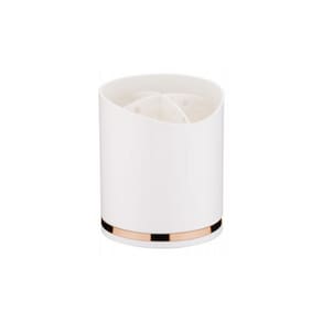 Porta Utensílios Em Plástico Eleganza 13x15cm Future Branco e Cromado - Características Gerais do Produto: • Dimensões: Ø 13x15cm • Material Principal: Plástico • Linha: Eleganza • Informações Adicionais: Limpar com pano úmido; Não utilizar materiais abrasivos como palha de aço; Não utilizar produtos químicos
