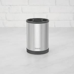 O Porta-utensílios Giratório em aço inox é ideal para armazenar seus utensílios de maneira funcional. Desenvolvido em aço inox, material resistente e altamente durável, permite que você localize o item necessário com maior facilidade, pois conta com base giratória em polipropileno e rolamentos em acrílico. Possui divisórias internas para melhor separação dos itens e pode ser colocado na pia ou na bancada, proporcionando excelente organização para a sua cozinha e disposição para seus utensílios, como colheres, conchas, espátulas, batedores e muito mais. Além disso, seu design é diferenciado e moderno, concedendo um toque de elegância ao ambiente.