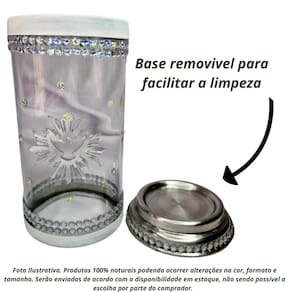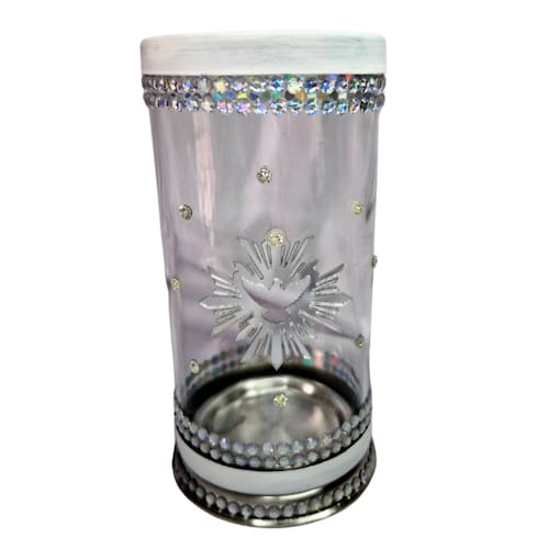 Com 18 cm de altura, o Porta Vela é perfeito para exibir velas de forma segura e estilosa. Seu material em vidro proporciona um toque sofisticado, enquanto o desenho do Espírito Santo adiciona um elemento de devoção e beleza à decoração.