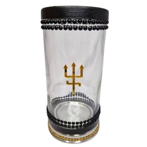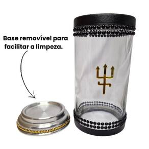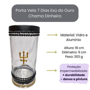 Porta Vela 7 Dias Exu do Ouro Chama Dinheiro Porta Vela 7 Dias 18 cm Exu do Ouro Chama Dinheiro Vidro e Alumínio