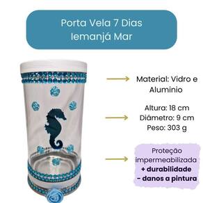O Suporte de Vela Iemanjá da Bialluz é feito de alumínio e vidro, sendo ideal para uma vela de 7 dias. Por ser um castiçal com material antichamas, você tem maior segurança ao acender suas velas. Esse lindo presente é delicadamente decorado de forma artesanal para garantir a elegância e qualidade de cada peça. Com detalhes luxuosos que brilham e cores vivas que deixam o vaso ainda mais maravilhoso. É um excelente presente para valorizar a decoração do seu ambiente. Seus guardiões e guardiãs agradecerão tanto carinho, cuidado e beleza desse presente. Nossos produtos são selecionados ou produzidos com muito carinho e embalados com o máximo cuidado possível para que a sua experiência seja inesquecível.