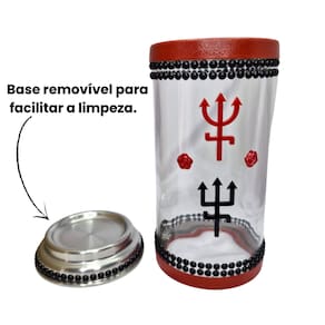 O Suporte de Vela Pomba Gira e Exu da Bialluz é feito de alumínio e vidro, sendo ideal para uma vela de 7 dias. Por ser um castiçal com material antichamas, você tem maior segurança ao acender suas velas. Esse lindo presente é delicadamente decorado de forma artesanal para garantir a elegância e qualidade de cada peça. Com detalhes luxuosos que brilham e cores vivas que deixam o vaso ainda mais maravilhoso. É um excelente presente para valorizar a decoração do seu ambiente. Seus guardiões e guardiãs agradecerão tanto carinho, cuidado e beleza desse presente. A Bialluz é uma empresa idônea e especializada em pedras semipreciosas e produtos artesanais de decoração.Nossos produtos são selecionados ou produzidos com muito carinho e embalados com o máximo cuidado possível para que a sua experiência seja inesquecível.