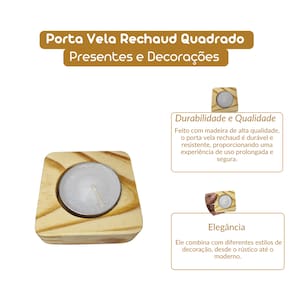Características e Benefícios: Design Quadrado e Moderno: O formato quadrado proporciona um visual clean e moderno, que se adapta facilmente a diferentes ambientes, desde salas de estar e quartos até jantares à luz de vela ou celebrações especiais. A simplicidade do design dá um toque de classe a qualquer decoração. Versatilidade na Decoração: Ideal para criar uma atmosfera relaxante em sua casa ou para complementar a decoração de eventos como jantares românticos, meditações ou até casamentos. Seu formato e estilo atemporal combinam com diversos estilos, desde o rústico até o contemporâneo. Presente Encantador: Este porta vela é uma excelente opção de presente para aniversários, datas comemorativas ou como uma surpresa especial para quem você ama. Seu design elegante e funcional é perfeito para agradar em qualquer ocasião. Durabilidade e Qualidade: Feito com materiais de alta qualidade, o porta vela rechaud quadrado é resistente e seguro para o uso diário. Ele garante uma experiência prolongada, mantendo sua beleza intacta ao longo do tempo.