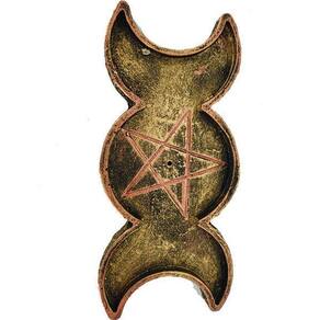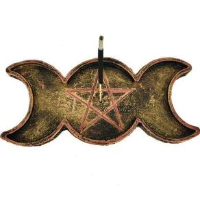 Porta velas eclipse 13575 manxs, imagine só essa belezura como parte do seu altar e seus rituais. Nosso castiçal possui o formato da triluna simbolizando as fases da lua muito utilizada pelos adoradores da deusa hécate, wiccanos e bruxos em geral, além do pentagrama, simbolizando os quatro elementos e o espírito, a terra e um portal de conexão com o sagrado. Ideal tanto para velas de 7 dias quanto de qualquer tamanho menor. Porta velas lua tripla, em resina, que aguenta calor e permite o descolamento da cera após a queima. Porta velas que pode ser utilizado em altar ou como bandeja ou ainda como incensário. Pode também ser utilizado como porta jóias ou como enfeite. Este porta velas serve também como uma decoração para o seu cantinho, no centro você coloca a vela e junto, nas laterais, você coloca as suas pedras e cristais preferidos. Tamanho 15cm x 7cm