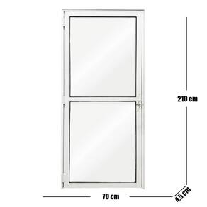 Feita com alumínio de alta qualidade e conta com pintura eletrostática branca. A porta possui uma folha de vidro, acompanha batente, maçaneta, par de chave e vai pronta para ser instalada.