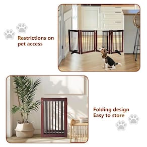 Este portão independente para animais de estimação é a solução perfeita para manter seus amigos peludos seguros e protegidos sem o incômodo de instalação permanente. Com um design elegante em estilo de órgão com quatro painéis de 76 cm de altura e dois pés de suporte, este portão é resistente e estável, evitando que até mesmo os filhotes mais enérgicos o derrubem. O design independente permite que você mova e coloque o portão sem esforço em qualquer local desejado, oferecendo flexibilidade para restringir o acesso do animal de estimação em toda a sua casa. Feito de madeira de alta qualidade, este portão para animais de estimação pesa 10 kg e pode ser facilmente dobrado para armazenamento conveniente, com um tamanho dobrado de apenas 76 x 51 x 8,4 cm. Diga adeus ao incômodo da instalação permanente e aproveite a liberdade de criar espaços seguros para seus amados animais de estimação com este portão versátil e funcional para animais de estimação. - Portão autônomo para animais de estimação: o portão para animais de estimação apresenta um design de estilo de órgão com 4 painéis de 76 cm de altura e 2 pés de suporte para manter o portão estável e evitar que os filhotes o derrubem. - Design independente: portões independentes para cães abertos e prontos para usar, sem necessidade de instalação. Não é necessário fixá-lo na parede, pode ser movido e colocado de forma flexível em qualquer local desejado para restringir o acesso ao animal de estimação. - Portão dobrável de madeira para cães: os portões para cães pesam 10 kg e podem ser facilmente dobrados, o tamanho dobrado é de apenas 76 x 50 x 8,4 cm, fácil de armazenar sem ocupar espaço, o tamanho desdobrado é de 207 x 76 x 2 cm. - Portão interno para cães com trava: portão para animais de estimação com portão giratório, o tamanho do portão é de 68 x 38 cm com trava de mola, fácil para animais de estimação e pessoas passarem. - Multiuso: a cerca independente para animais de estimação pode ser usada como uma porta, corredor, divisória de passagem, adequada para escadas ou portas, pode ser usada para treinamento de animais de estimação ou para controlar sua amplitude de movimento.