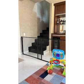 Possui 85 cm de altura e largura regulável, variando de 105 cm até 200 cm sem precisar de extensor além disso, o portão de correr reall articula 180º, ou seja, abre tanto para dentro como para fora. E o melhor: o vão é livre diferente de outros produtos no mercado, que possuem uma barra na parte inferior, o portão de correr reall tem um design exclusivo, garantindo maior segurança para sua família pois não há risco de tropeçar.
