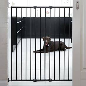 Design escandinavo para animais de estimação, extra alto, suporte de parede, 106 cm, extensível, portátil, portão de segurança para animais de estimação para cães grandes e pequenos com kit de - Mantenha seus animais de estimação seguros e separados com este portão expansível para animais de estimação; use-o para criar uma área de jogo segura ou para evitar que seu animal de estimação acesse determinados cômodos ou móveis - Instalado com uma função de liberação rápida para fácil instalação e ajuste; ambos os lados deste portão de segurança para animais de estimação podem ser abertos com apenas uma mão para facilidade adicional de uso - Ótimo para animais grandes e pequenos; os pequenos animais serão mantidos seguros e protegidos com o portão de segurança para animais de estimação e espaços estreitos entre as barras - Feito de material metálico para longevidade e durabilidade, este portão expansível para animais de estimação é flexível e pode ser instalado na maioria dos ambientes domésticos e na maioria das portas e aberturas - O portão expansível para animais de estimação mede 63 a 107 cm de largura e 103 cm de altura; os espaços entre as barras medem 5,3 cm, garantindo que mesmo os menores animais de estimação de pelo não vão para áreas indesejadas