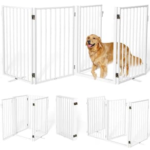 - Pacote e dimensão: 4 peças de painéis de 50 x 81 cm, suportes de 60 cm. Dimensões: 51 x 81 x 8 cm quando dobrado, 203 x 81 x 2 cm quando totalmente desdobrado. Peso: 10,7 kg. Nosso portão para cães não requer montagem
