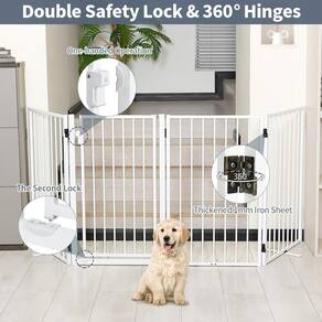 - Portão para animais de estimação com porta: portão para animais de estimação com porta, conveniente para você entrar e sair. A porta está equipada com um sistema de bloqueio duplo para garantir a segurança da porta e não será facilmente aberta por cães