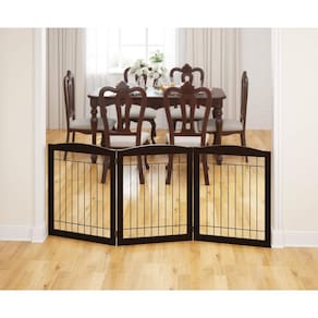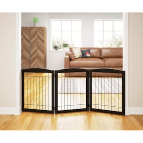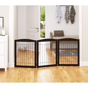 O portão de madeira dobrável para animais de estimação PAWLAND é uma opção versátil para prender e impedir que seu novo filhote ou gatinho explore muito a casa. Este portão para animais de estimação apresenta um design articulado semelhante a acordeão que permite que você dobre para caber em quase qualquer porta ou corredor. A peça é feita de madeira resistente com dobradiças de metal duráveis. As lâminas largas fornecem uma barreira segura sem que o seu animal de estimação sinta que está completamente isolado de casa. Escolha a opção de cor entre as disponíveis. CARACTERÍSTICAS: Construído a partir de madeira e fio de aço forte se expande para caber em quase qualquer largura Chega totalmente montado Design dobrável e livre Adequado para cães de todos os tamanhos e raças Dobra rapidamente para fácil armazenamento Pés de borracha antiderrapantes resistentes mantêm seus pisos seguros de arranhões Elegante e elegante fica ótimo com qualquer variedade de estilos de decoração - Simples e resistente: este portão de madeira conversível para cães é uma cerca para animais de estimação, divisor de quarto e caneta para animais de estimação tudo em um. Feito de madeira resistente e fio de aço forte. Pés de borracha antiderrapantes para proteger o seu chão. - DESIGN DOBRÁVEL E EXPANSÍVEL: Esta cerca para cães de estimação é independente e pode ser dobrada em forma de Z larga permite que você a use em corredores completos, portas duplas ou portas padrão, quartos, escadas ou qualquer lugar em sua casa. - FÁCIL DE CONFIGURAR E ARMAZENAR: O portão para cães se desdobra rapidamente como um acordeão, o que o torna simples de configurar e guardar. - Não é necessário montar: este portão para animais de estimação já vem totalmente montado. - Extra largo e alto: DEMS aberto: até 182,88 cm largura x 0,190 cm profundidade x 79,2 cm altura; DEMES COLAPSADAS: 61 cm Largura x 6 cm Profundidade x 79 cm Altura; Peso: 9 kg