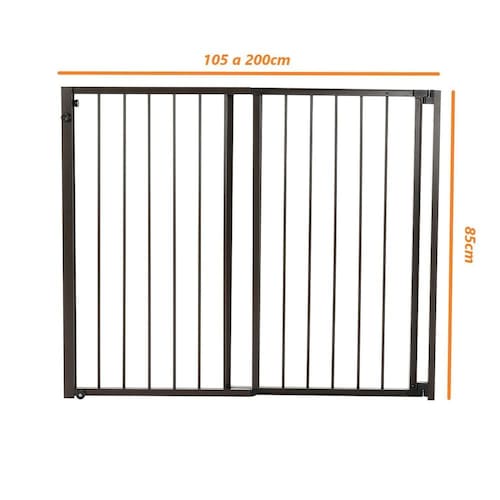 Possui 85 cm de altura e largura regulável, variando de 105 cm até 200 cm sem precisar de extensor além disso, o portão de correr reall articula 180º, ou seja, abre tanto para dentro como para fora. E o melhor: o vão é livre diferente de outros produtos no mercado, que possuem uma barra na parte inferior, o portão de correr reall tem um design exclusivo, garantindo maior segurança para sua família pois não há risco de tropeçar.