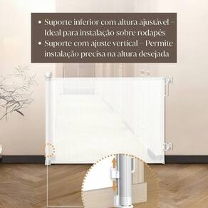 Portão Retrátil Sem Perfuração Para Bebês E Pets Segurança Cor: Preto Garanta a segurança dos pequenos e dos pets com a nossa Grade Retrátil Inteligente, desenvolvida para proporcionar proteção, praticidade e design moderno em um único produto. Ideal para portas, corredores e escadas, ela conta com estrutura leve, retrátil e silenciosa - perfeita para o dia a dia. Principais Benefícios: Medidas ajustáveis: 86 cm de altura até 140 cm de largura. Trava dupla de segurança: Impede o acesso de crianças e permite fácil abertura por adultos. Silenciosa: Evita ruídos ao fechar, protegendo o sono do bebê. Rotação 180: Pode ser aberta para ambos os lados. Instalação versátil: Com ou sem perfuração inclui kit adesivo . Ajuste de altura: Ideal para ambientes com rodapé. Material seguro: Tela em ABS ecológico, sem odor e atóxica. Eixo de metal tensionado: Alta durabilidade e resistência. Acompanha: 2 Suportes Superiores + 2 Suportes Inferiores 4 Âncoras + Pinos completos 8 Adesivos Tipo A e B 1 Kit de Instalação Adesiva Disponível nas cores: Branco Cinza Preto do vendedor: 3 meses Marca: Não Informado Ean: 7899377932136