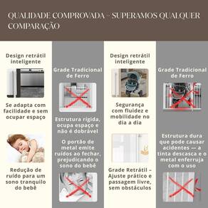 Portão Retrátil Sem Perfuração Para Bebês E Pets Segurança Cor: Branco Garanta a segurança dos pequenos e dos pets com a nossa Grade Retrátil Inteligente, desenvolvida para proporcionar proteção, praticidade e design moderno em um único produto. Ideal para portas, corredores e escadas, ela conta com estrutura leve, retrátil e silenciosa - perfeita para o dia a dia. Principais Benefícios: Medidas ajustáveis: 86 cm de altura até 140 cm de largura. Trava dupla de segurança: Impede o acesso de crianças e permite fácil abertura por adultos. Silenciosa: Evita ruídos ao fechar, protegendo o sono do bebê. Rotação 180: Pode ser aberta para ambos os lados. Instalação versátil: Com ou sem perfuração inclui kit adesivo . Ajuste de altura: Ideal para ambientes com rodapé. Material seguro: Tela em ABS ecológico, sem odor e atóxica. Eixo de metal tensionado: Alta durabilidade e resistência. Acompanha: 2 Suportes Superiores + 2 Suportes Inferiores 4 Âncoras + Pinos completos 8 Adesivos Tipo A e B 1 Kit de Instalação Adesiva Disponível nas cores: Branco Cinza Preto do vendedor: 3 meses