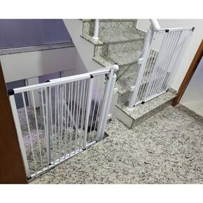 Possui 85 cm de altura e largura regulável, variando de 58 cm até 100 cm sem precisar de extensor além disso, o portão de correr reall articula 180º, ou seja, abre tanto para dentro como para fora. E o melhor: o vão é livre diferente de outros produtos no mercado, que possuem uma barra na parte inferior, o portão de correr reall tem um design exclusivo, garantindo maior segurança para sua família pois não há risco de tropeçar.