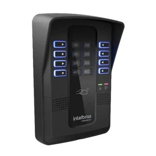 Perfeito para condomínios de pequeno e médio porte. O Collective está disponível em versões para 4, 8 ou 12 apartamentosLigações sigilosasMoradores podem ligar de um apartamento para o outro com total sigilo. Além disso, um aparelho fora do gancho não afeta o funcionamento do sistema.Economia na instalaçãoAo trocar o porteiro atual para o Collective não é necessário refazer a parte elétrica. Basta instalar o produto usando a mesma fiação.Entradas auxiliaresO controle de acesso permite a instalação de sensores de abertura e botoeira para a liberação de saída.» 3 versões: 4, 8 e 12 teclas;» Ligação direta e sigilosa da rua com os apartamentos e entre apartamentos;» Leitor de cartão Mifare (XID 1000);» Duas entradas configuráveis para sensor, botoeira ou pânico;» Alterar ou programar numeração flexível direta do apartamento;» Compatibilidade com principais terminais dedicados disponíveis no mercado (TDMI 300 entre outros);Especificações técnicasAlimentação Rede AC (100 - 240 V automático)Frequência de leitura de TAG 13,56 MHz (Mifare)Atualização de firmware Via micro USB (Utilizado na maioria dos modelos celulares)Acionamentos Fechadura eletromecânica 12V / 1AContato seco - máx. 30V / 2ADimensões (L x A x P) 120 x 185 x 70 mmTemperatura de operação De -5°C a 55°CPeso Collective 8 = 489gQuantidade de ramais Verificar titulo do anuncio