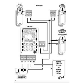 Porteiro eletronico coletivo 12 pontos amelco am-ppr12 Porteiro eletrônico coletivo amelco 12 pontos unidade externa am-ppr12 A amelco, buscando oferecer cada vez mais soluções em segurança eletrônica para seus clientes, apresenta o porteiro predial am-ppr. O design moderno, acionamento universal de fechadura 12 vdc, funcionamento mesmo com um ou mais interfones fora do gancho, Sistema de identificação de interfones fora do gancho, além da possibilidade de integração com centrais de portaria amelco, modelos amccd10, am-c100 e cpc4b, torna este produto o mais completo e eficiente do mercado. Composição do sistema O sistema é composto de um porteiro predial am-ppr, uma fonte de alimentação fpl-450 ou fonte ac/ac 18 vca itens não inclusos E interfones ic65, ic55 ou ic45 itens não inclusos . Aplicação Comunicação entre o interior e o exterior de prédios, condomínios etc. Este sistema evita que você ou alguém de sua família se Exponha indo até o portão para atender um visitante desconhecido, oferecendo maior segurança e conforto. Aplicação quando há 2 entradas ou entrada principal e divisão em blocos Esta integração utiliza interfones ic65i ou ic55i. O interfone ic65i possui 4 terminais para ligação dos fios. A chamada dos porteiros São diferenciadas para identificação da origem da chamada, após a identificação da chamada o interfone possui uma chave para Selecionar o atendimento do porteiro a entrada principal ou porteiro b entrada do bloco . O acionamento da fechadura é realizado no Porteiro que está selecionado. Características gerais - porteiro com design moderno, fabricado em plástico abs de alto impacto e alumínio brilhante - o sistema continua funcionado mesmo com um interfone ou mais fora do gancho o toque é re-habilitado após, aproximadamente, 2 minutos de comunicação - possui mecanismo para identificação de interfones fora do gancho - permite integração com centrais de portaria amelco modelos am-ccd10, am-c100 e cpc4b - ajuste do volume de áudio de transmissão e recepção - indicador de interfone fora do gancho através de led - possibilita instalação de botão adicional, para acionamento do fecho ou fechadura eletromagnética - fonte ac/ac 18vca amelco ou fonte dc fpl450 amelco. Instalação A melhor maneira de se obter uma instalação perfeita e garantida é contratar um posto de serviço autorizado da amelco. No caso de Ainda não tê-lo em sua cidade, contrate os serviços de um profissional com comprovada experiência em instalações de sistemas De comunicação. Atenção: danos causados por erros de instalação ou uso inadequado não são cobertos pela , vide certificado de do produto. Marca: Não Informado
