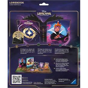 Portfólio oficial Disney Lorcana: Design exclusivo com a icônica Rainha Má da Disney.Alta capacidade de armazenamento: Organiza e protege até 64 cartas padrão e 8 cartas oversized.Proteção premium Ravensburger: Materiais duráveis que preservam suas cartas contra desgaste e danos.