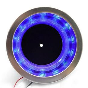 Porto copo de embutir em aço inox com led Modelo em aço inox com iluminação em led 12 volts marinizado a prova de água. Alimentação em 12v com led na cor azul. Encaixe para copos e garrafas com dreno, encaixe para garrafas até 93mm, em aço inox polido.