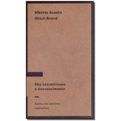 Idioma: Português Editora Do Livro: ELEFANTE EDITORA Autor: ACOSTA, ALBERTO E BRAND, ULRICH Título Do Livro: Pós-extrativismo e descrescimento: Saídas do labirinto capitalista Data De Publicação: 01-01-2024 Data Publicação: 01-01-2024 Gênero Do Livro: Literatura e ficção Marca: ELEFANTE EDITORA