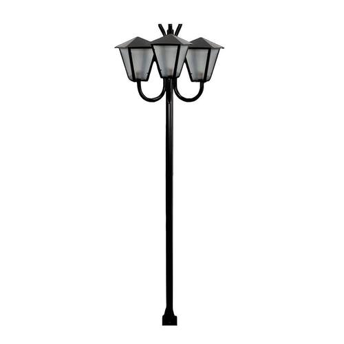01 Poste Braço Curvo Luminária Romana Tripla Jardim Preto 300cm.