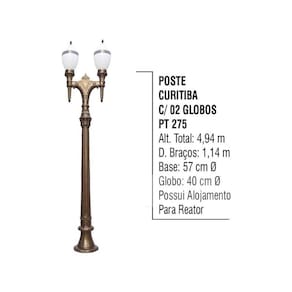 Itens Inclusos: 01 Poste Colonial Curitiba Jardim de Alumínio 02 Globo 4,94m