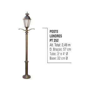 01 Poste Colonial Londres Jardim de Alumínio 01 Luminária 2,49m