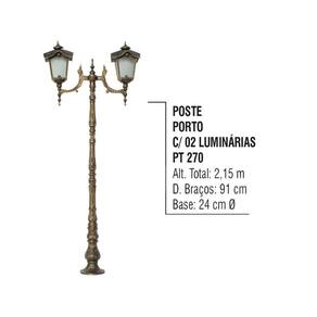 01 Poste Colonial Porto Para Jardim Alumínio 02 Luminária 2,15m