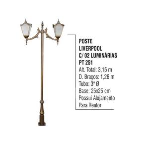 Poste para jardim, ideal para condomínios, jardins, praças, parques, estacionamentos, vias urbanas e áreas externas em geral. Pode ser utilizada em regiões de praianas, pois não sofre ação da maresia. Ótimo custo benefício. Possui Alongamento para reator.