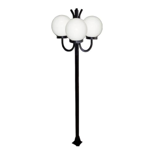 01 Poste Luminária Globo G Triplo Braço Curvo Cima Preto 300cm.