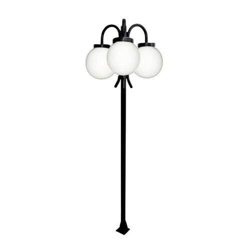 01 Poste Luminária Globo P Triplo Braço Curvo Baixo Preto 300cm.