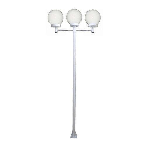 01 Poste Luminária Triplo Globo P Braço Reto Jardim Branco 300cm.