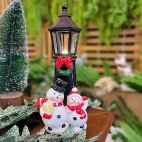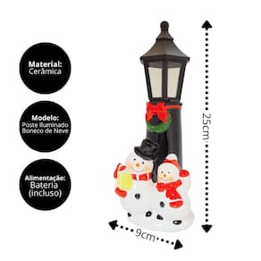 Poste Natalino Decorativo em Cerâmica Iluminado – Boneco de Neve 24cm