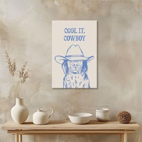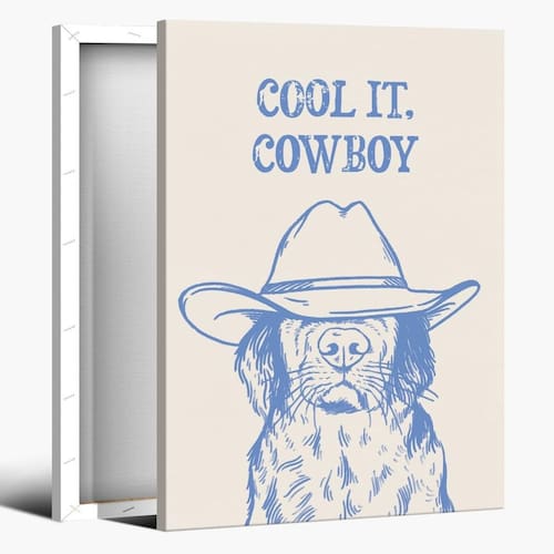 Pôster com citação Blue Dog – Arte motivacional de parede "Cool It Cowboy" para casa, escritório e dormitório