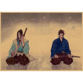 Tamanho: 29,7 x 42 cm Peso: 150 g Material: papel Embalagem: 1 x pôster Esta pintura de pôster em estilo anime é inspirada no mangá Vagabond de Takehiko Inoue, com os lendários espadachins Miyamoto Musashi e Sasaki Kojiro em uma cena samurai calma e poderosa. Impresso em papel vintage estilo kraft, o pôster mostra tons retrô suaves e arte de linha detalhada, tornando-o perfeito para decorar quartos, salas de estar, estúdios, cafés, bares ou paredes de escritórios. O design de pintura sem moldura o mantém leve e fácil de exibir. Você pode pendurar ou montar o pôster livremente para criar instantaneamente uma atmosfera elegante com tema de samurais e animes japoneses. Esta arte de parede é um item colecionável significativo para fãs da cultura de mangá e samurai. Também é um presente de aniversário ou Natal atencioso para amigos e familiares que gostam de contar histórias japonesas clássicas. A embalagem inclui apenas 1 pôster. Valorizamos a qualidade e a satisfação do cliente. Se este item não atender às suas expectativas, sinta-se à vontade para entrar em contato conosco e ajudaremos você com paciência e cuidado.
