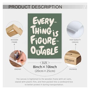Uplifting Lnspirational Wall Art Everything Is Figureoutable Positive Print Pôster de citação de escritório verde sálvia 30,5 x 40,6 cm sem moldura afirmações positivas decoração de parede para sala de aula quarto de crianças - ?Arte de parede de motivação?: Pôster de arte de positividade, disponível em uma variedade de tamanhos - 20 x 25 x 36 cm 20 x 76 cm - e em três formatos: moldura de madeira sem moldura e moldura de alumínio preto, oferecendo várias opções para combinar com qualquer decoração. - ?Arte com citação edificante?: Impressão eclética de pôsteres de arte de parede Use tinta de proteção ambiental de alta qualidade, não desbota facilmente, cores vivas, à prova d'água, resistente a UV, sem odor. A arte em preto e branco adicionará um toque de estilo e personalidade às suas paredes. - ?Decoração de pôster inspiradora?: Esta decoração de parede motivacional verde sálvia, com seu design fresco e inspirador, é muito adequada para colocação em espaços privados, como salas de estar, salas de estudo ou estúdios pessoais em casa, trazendo energia positiva e inspiração para a vida diária ou trabalho e estudo. - ?Presentes exclusivos?: esta decoração de parede inspiradora verde sálvia é, sem dúvida, uma escolha especial cheia de sabedoria e cuidado como um presente para parentes e amigos. Não é apenas uma bela decoração de casa, mas também uma mensagem calorosa que transmite energia positiva, incentiva as pessoas a enfrentar desafios e abraçar a vida. - ?Serviço pós-venda?: Se você tiver algum problema com o produto comprado, por e-mail na primeira vez. Esperamos resolver quaisquer problemas que você possa encontrar de forma rápida e eficiente
