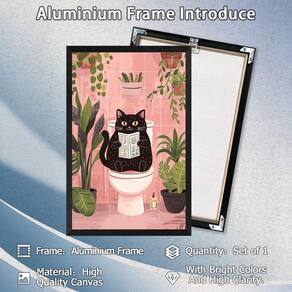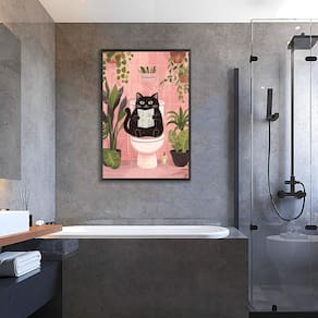 Pôster Funny Black Cat Bathroom Wall Art 40x60cm com moldura preta