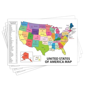 - Este simples mapa dos Estados Unidos da América é impresso colorido em uma fina espessura de 12 peças. Cartolina brilhante, 50 kg | Cartolina de 300 g/m² - Tamanho 28 x 43 cm