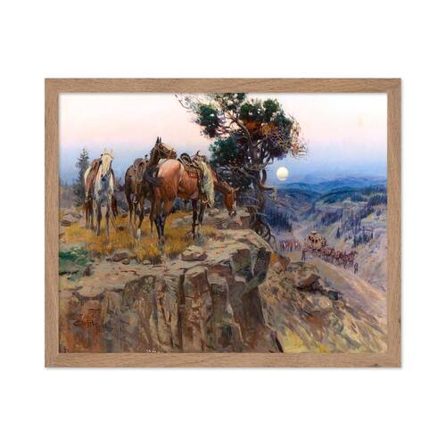 Poster Master Pôster de pintura vintage Innocent Allies - Impressão retrô The Holdup - Arte ocidental - Arte de cavalo - Presente para homens e mulheres - Decoração de paisagem para sala de estar ou escritório, moldura bege 20 x 25 cm