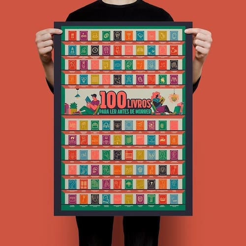Com esse poster com 100 livros selecionados por especialistas você pode descobrir novas obras e novos autores, além de se encantar com histórias clássicas, contos de ficção, poesia e obras contemporâneas.