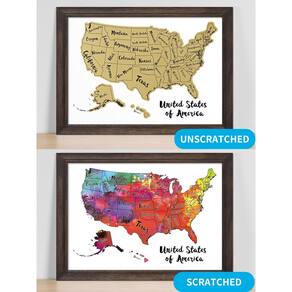 - Grave sua viagem: o mapa de 30 x 43 cm cabe em uma moldura padrão dos EUA (moldura não incluída) e fica pendurado em um quadro de avisos ou cortiça. Você também pode colocar bandeiras e adesivos em algumas cidades já marcadas no mapa!