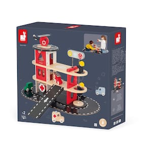 Principais Destaques: Completo e interativo: Inclui 2 carros, 1 ambulância, 1 caminhão de bombeiro e 1 helicóptero para resgates aéreos Pista externa e heliponto: Mais espaço para a imaginação correr solta Design em madeira com cantos arredondados e acabamento seguro Cores harmônicas e detalhes visíveis da madeira para um visual autêntico