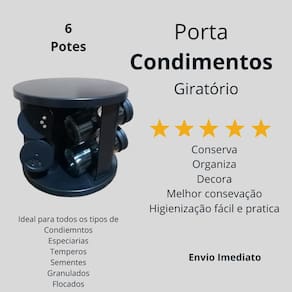Pota tempero giratório redondo 6 potes pote para tempero de vidro Porta Condimentos Giratório Redondo com 6 Potes de Vidro - Organização e Praticidade na Cozinha Mantenha seus temperos organizados e sempre à mão com o Porta Condimentos Giratório Redondo. Com design inovador e 6 potes de vidro, é a solução perfeita para quem deseja praticidade, elegância e otimização de espaço. Confira suas principais características: