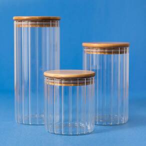 Esse é o pote 1100ml de vidro canelado com tampa de bambu de mantimento da OIKOS. :: mestre na conservação: o anel de silicone na tampa garante uma vedação total do pote – conservando os alimentos por muito mais tempo.:: acabamento especial: a tampa de bambu é selada para suportar umidade. dá para guardar alimentos mais líquidos e pode até ir na geladeira. e o vidro canelado traz aquele charme na peça. bacana, né?:: versátil: não é só de comida que vive esse pote: cabe pisca-pisca, pregadores de roupa, decoração festiva, flores secas, fios e o que mais você quiser guardar.:: higiênico e durável: seu corpo de vidro borossilicato é bastante resistente, e a tampa de bambu natural evita a proliferação de bactérias.:: design decorativo: funcional e bonito, esse potinho transita muito bem entre os diferentes cômodos da casa, espalhando seu charme por onde quer que vá – quarto, banheiro, cozinha, sala, escritório ou lavanderia, você que manda."