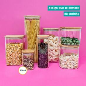 Características: - Material de Qualidade: Fabricado em vidro resistente, garante durabilidade e segurança para o armazenamento de alimentos. - Tampa de Bambu: Proporciona vedação eficiente, mantendo a frescura dos mantimentos e adicionando um toque natural. - Dimensões Compactas: Com 20 cm de altura e 9 cm de largura, é perfeito para prateleiras e armários. - Fácil Manutenção: Pode ser lavado com esponja e detergente neutro; a tampa de bambu deve ser mantida seca e arejada. - Versatilidade: Ideal para armazenar grãos, especiarias ou até mesmo itens de decoração.