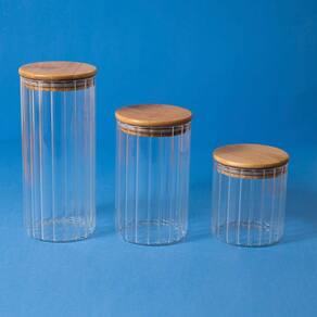 Esse é o pote 500ml de vidro canelado com tampa de bambu de mantimento da OIKOS. :: mestre na conservação: o anel de silicone na tampa garante uma vedação total do pote – conservando os alimentos por muito mais tempo.:: acabamento especial: a tampa de bambu é selada para suportar umidade. dá para guardar alimentos mais líquidos e pode até ir na geladeira. e o vidro canelado traz aquele charme na peça. bacana, né?:: versátil: não é só de comida que vive esse pote: cabe pisca-pisca, pregadores de roupa, decoração festiva, flores secas, fios e o que mais você quiser guardar.:: higiênico e durável: seu corpo de vidro borossilicato é bastante resistente, e a tampa de bambu natural evita a proliferação de bactérias.:: design decorativo: funcional e bonito, esse potinho transita muito bem entre os diferentes cômodos da casa, espalhando seu charme por onde quer que vá – quarto, banheiro, cozinha, sala, escritório ou lavanderia, você que manda."